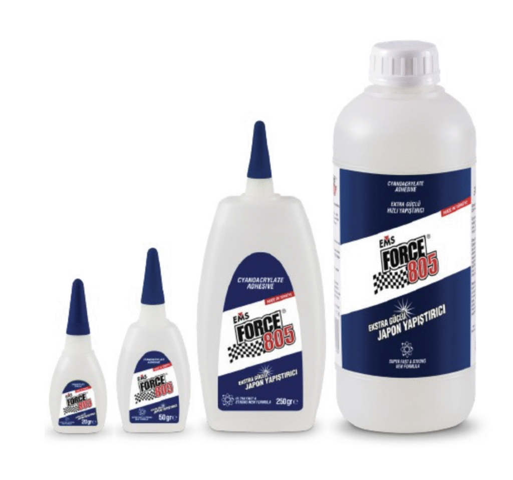EMS FORCE 805 Süper Yapıştırıcı genel amaçlı, düşük-orta viskoziteli, ultra-hızlı, nüfuz edici, etil siyanoakrilat yapıştırıcıdır.